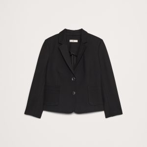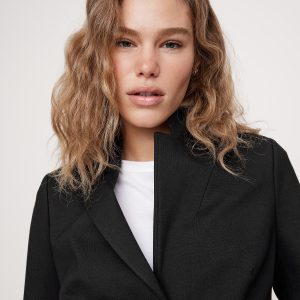 We cut this blazer in shrunken proportions using our Everywhere Ponte fabric—a favorite for its dressed-up look and high stretch for comfort. We added bracelet-length sleeves and small shoulder pads for a tailored silhouette, but opted for a butterfly lining at back.