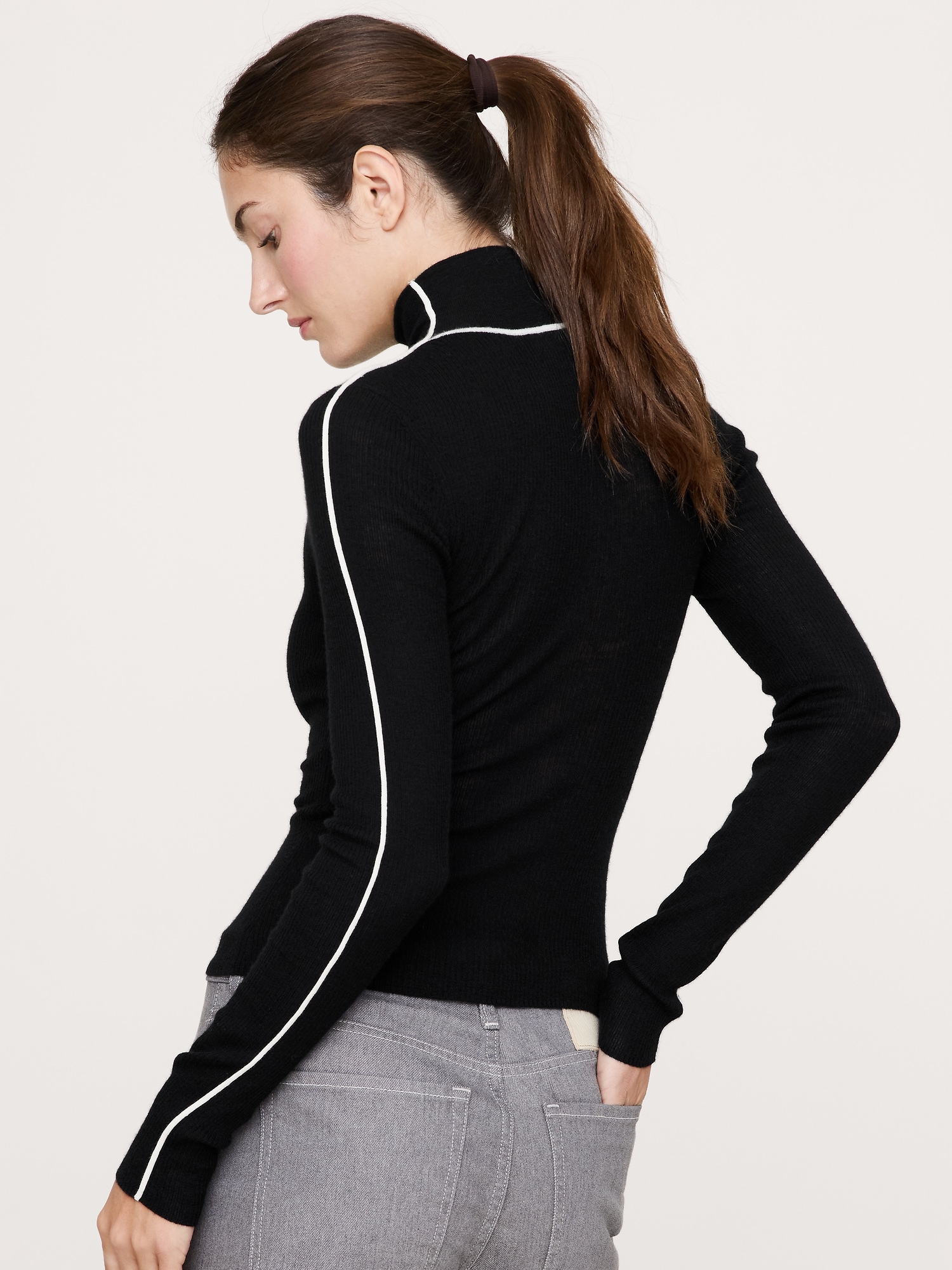 You have it all. This incredible cashmere turtleneck uses a featherweight yarn that’s oh-so-soft—without sacrificing warmth—and just a little heavier than a t-shirt in weight. Slim. Sits close to the body.