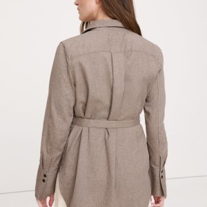 It’s these easy cotton shirts we’re loving right now. This one is tunic length and has an adjustable slider belt to define the waist, cut in our softest cotton flannel