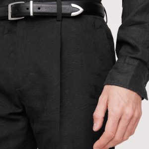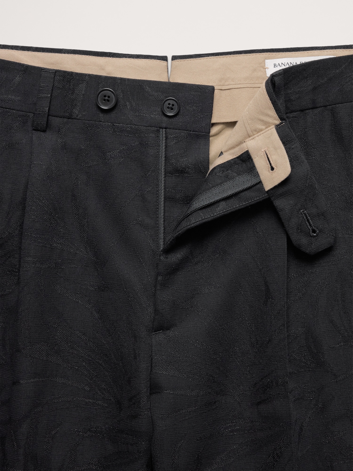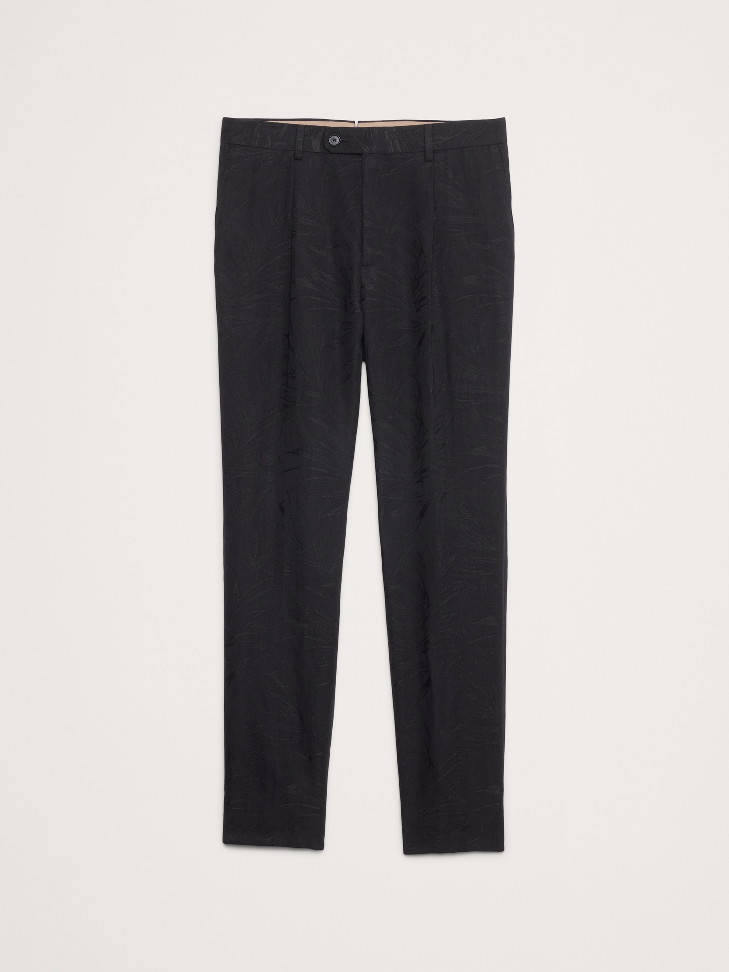 Playful and understated, we cut this pant in a jacquard fabric we love for its subtle jacquard floral pattern. Look closely: this fabric has a slight sheen to it so it reads more dressed-up.