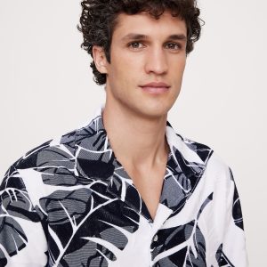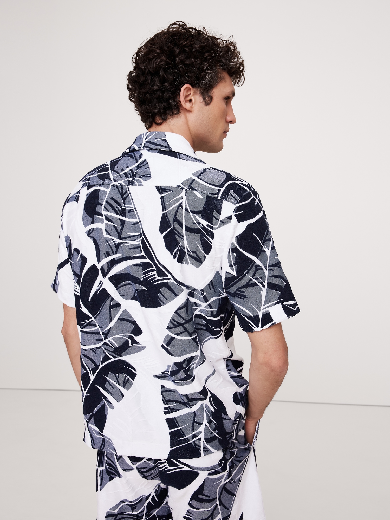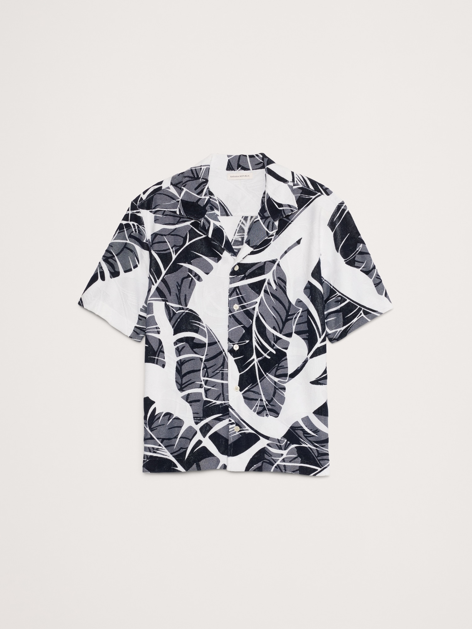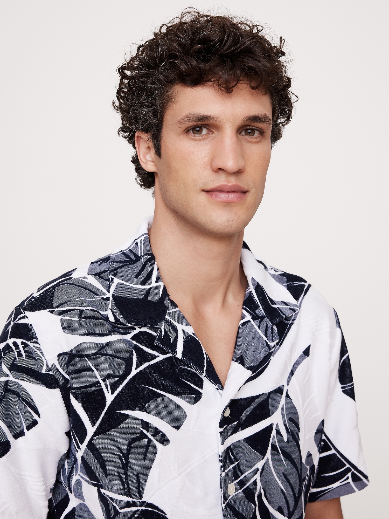 A classic resort shirt, made for warm-weather in a toweling terry fabric in a tropical floral print. Make it a set with the matching shorts.