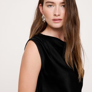 We designed this draped top for days when you need to look good and feel comfortable, cut in a beautiful hammered satin we love for its luxe, textured look.