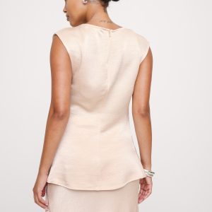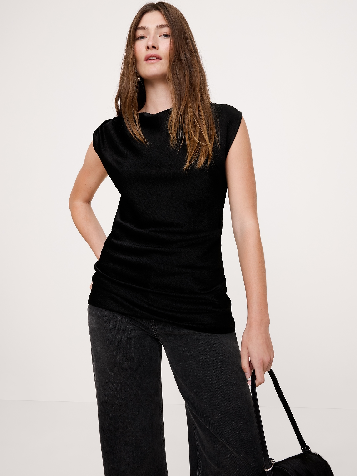 We designed this draped top for days when you need to look good and feel comfortable, cut in a beautiful hammered satin we love for its luxe, textured look.