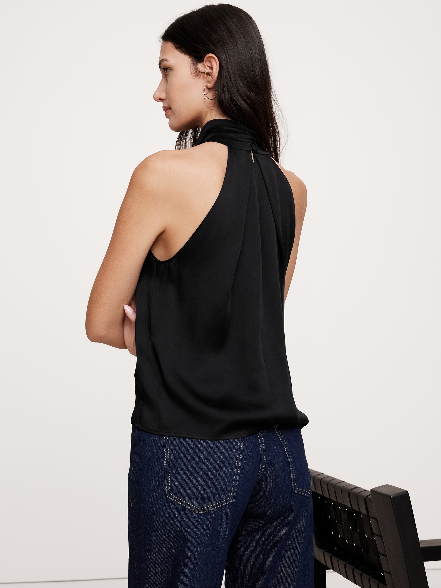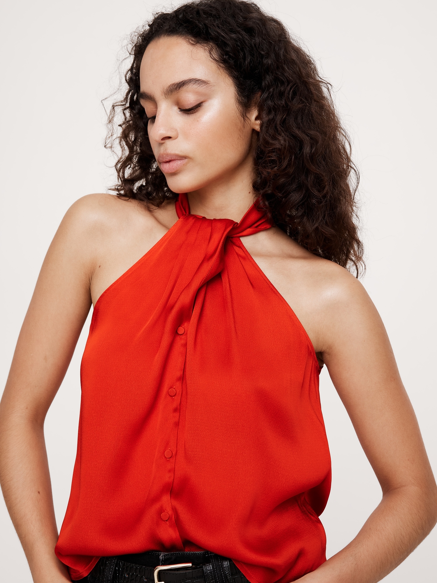This is the type of shirt we’ll find ourselves reaching for over and over. Looks good, feels great on thanks to a blousy fit and hammered satin fabric.