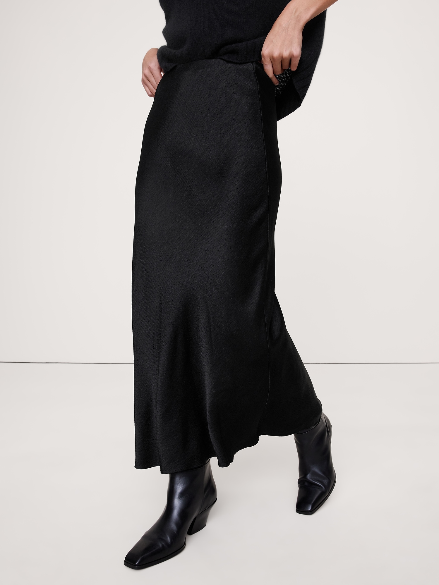 We designed this maxi-length slip skirt for days when you need to look good and feel comfortable, cut in a beautiful hammered satin we love for its luxe, textured look.