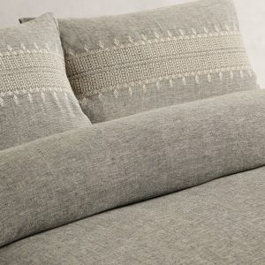 Our homage to the rich embroidery traditions of Morocco, this bedding collection is framed with intricate cross-stitched patterns that accent the border of this linen and cotton duvet cover.
