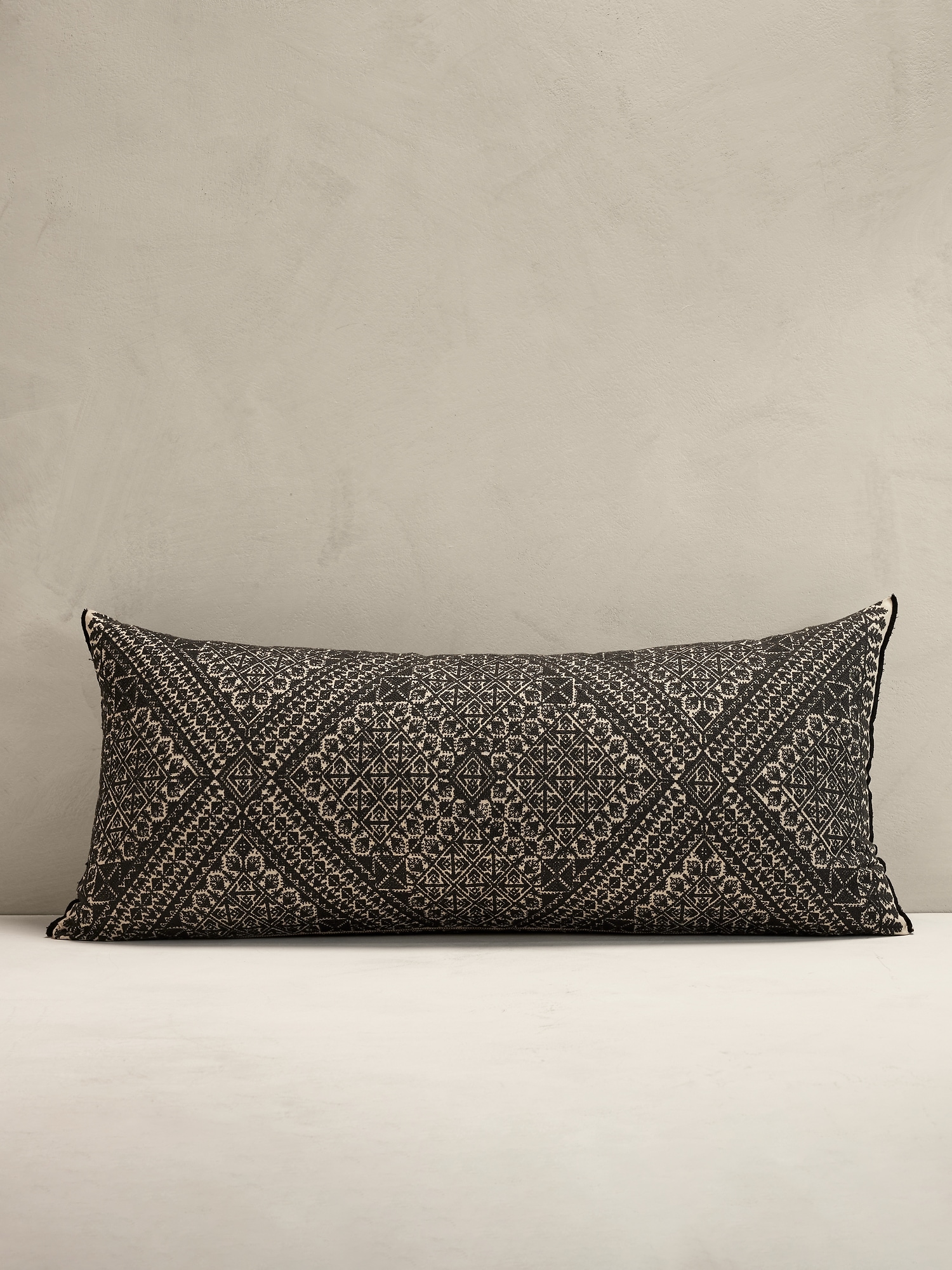 An homage to the rich embroidery traditions of Morocco, this bedding collection is framed with intricate cross-stitched patterns that accent the border of this pillow, crafted from a blend of luxurious linen and soft cotton. Hidden zip closure with wrap construction, which provides extra comfort through fewer seams. Pillow inserts are sold separately and are sized slightly larger than our pillow covers to create a fuller effect. Handmade in India. #728147