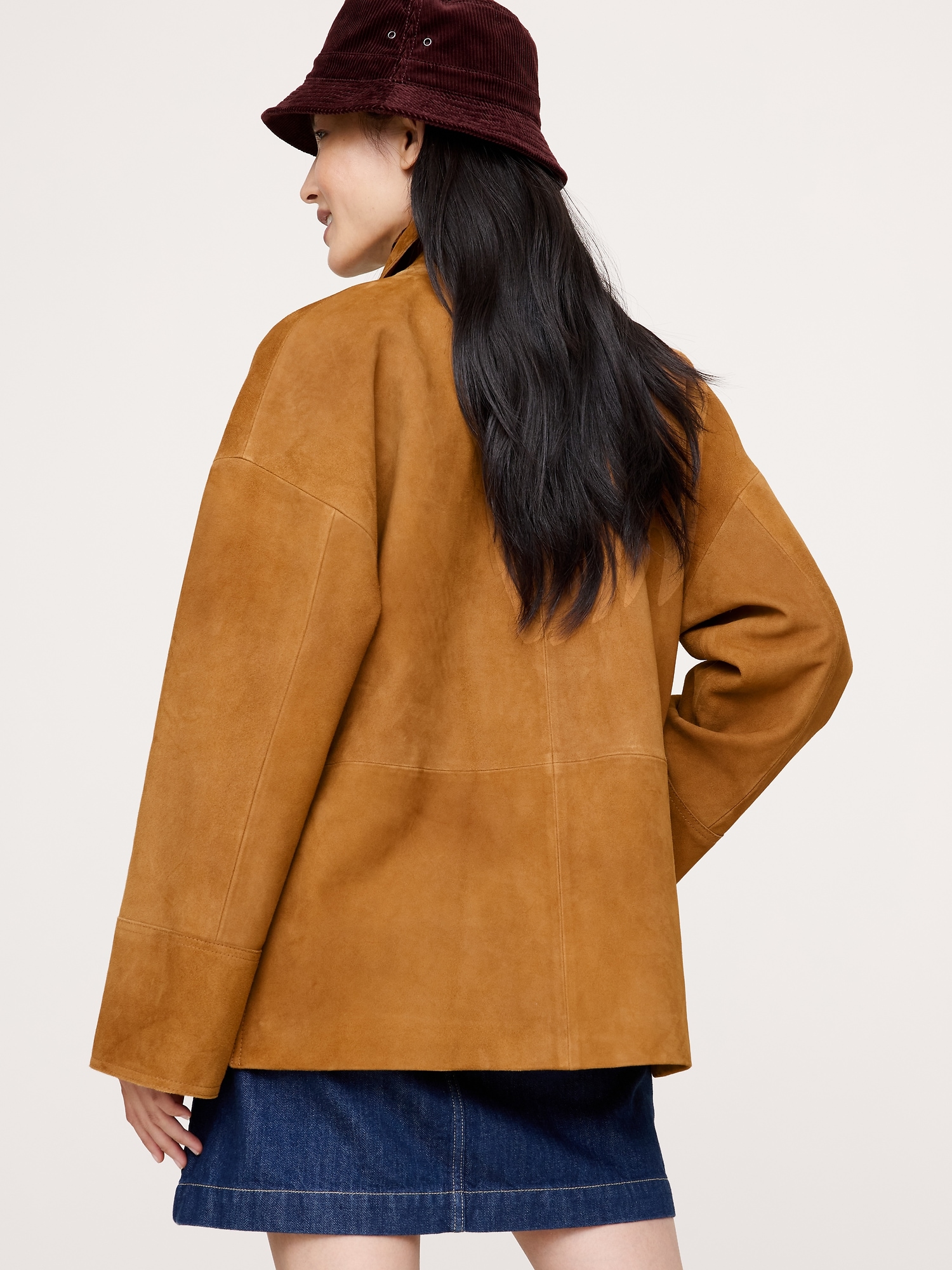 An archival piece revived, we kept the 3-pocket design of the original, opted for an easy fit with raw edges at the cuffs, button placket and hem to show off the beautiful, soft suede.
