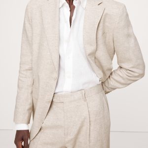 Herringbone Cotton-Linen Slim Suit Pant