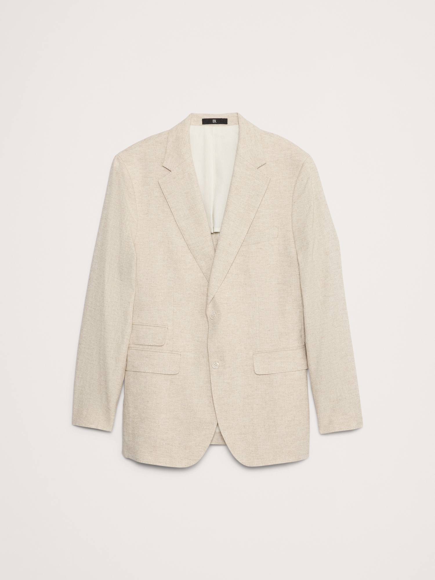 Designed with warm climates in mind, this sleek suit jacket is cut from an herringbone fabric that blends together soft cotton and luxurious linen. Here, we left the jacket unlined through the back for even better breathability.