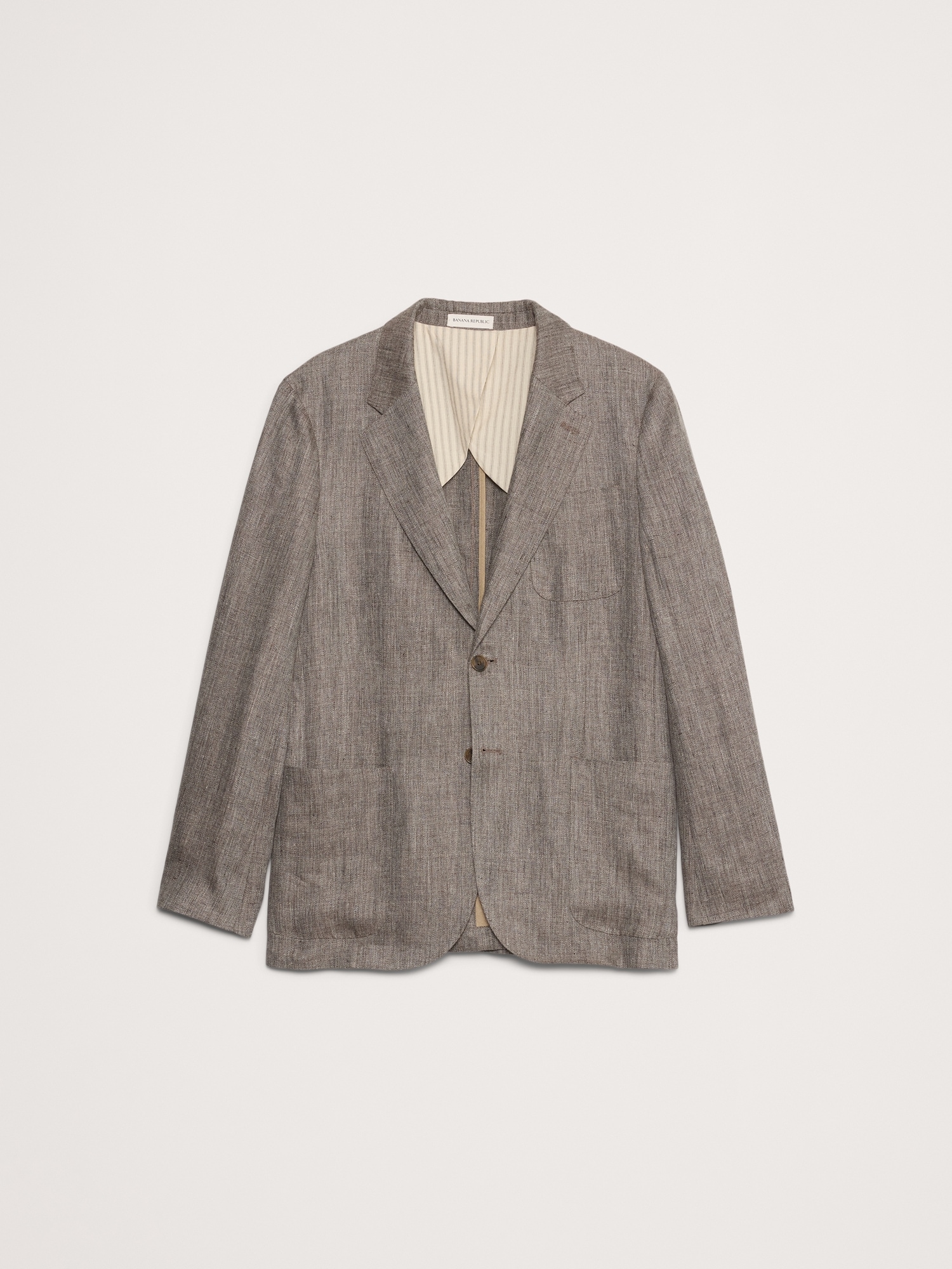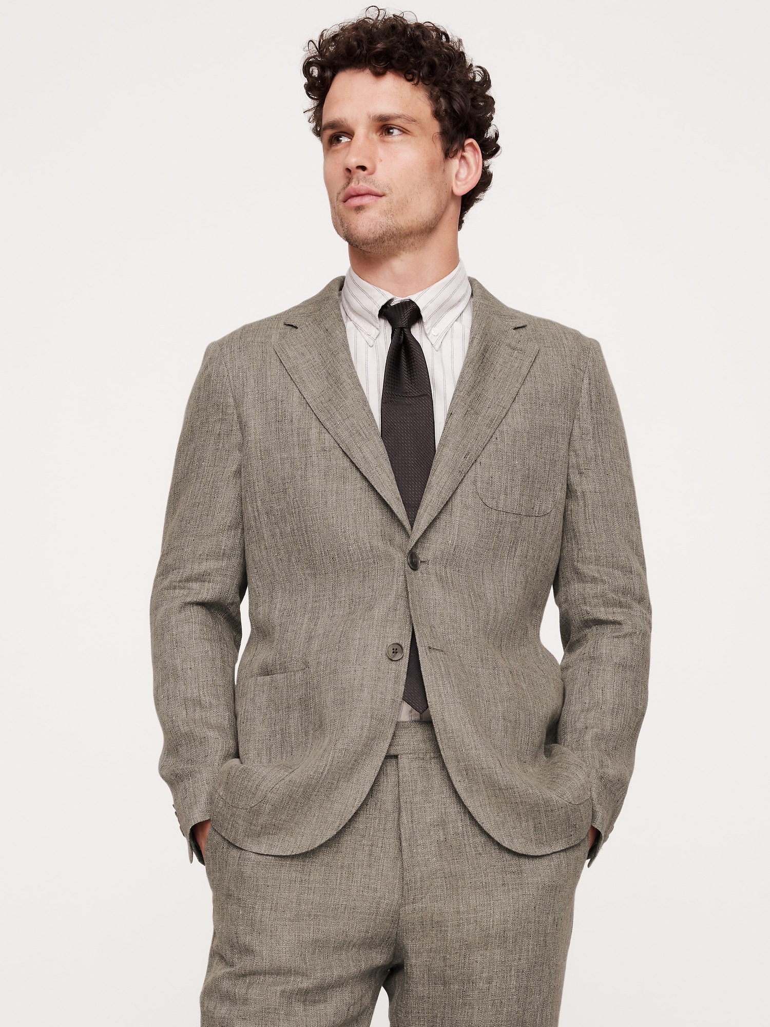 We cut this suit jacket with warm weather in mind, picking a beautiful, certified-European linen fabric and leaving the back unlined so it stays cool even when things heat up. Look closely: we love this fabric’s traditional herringbone weave and variegated taupe color.