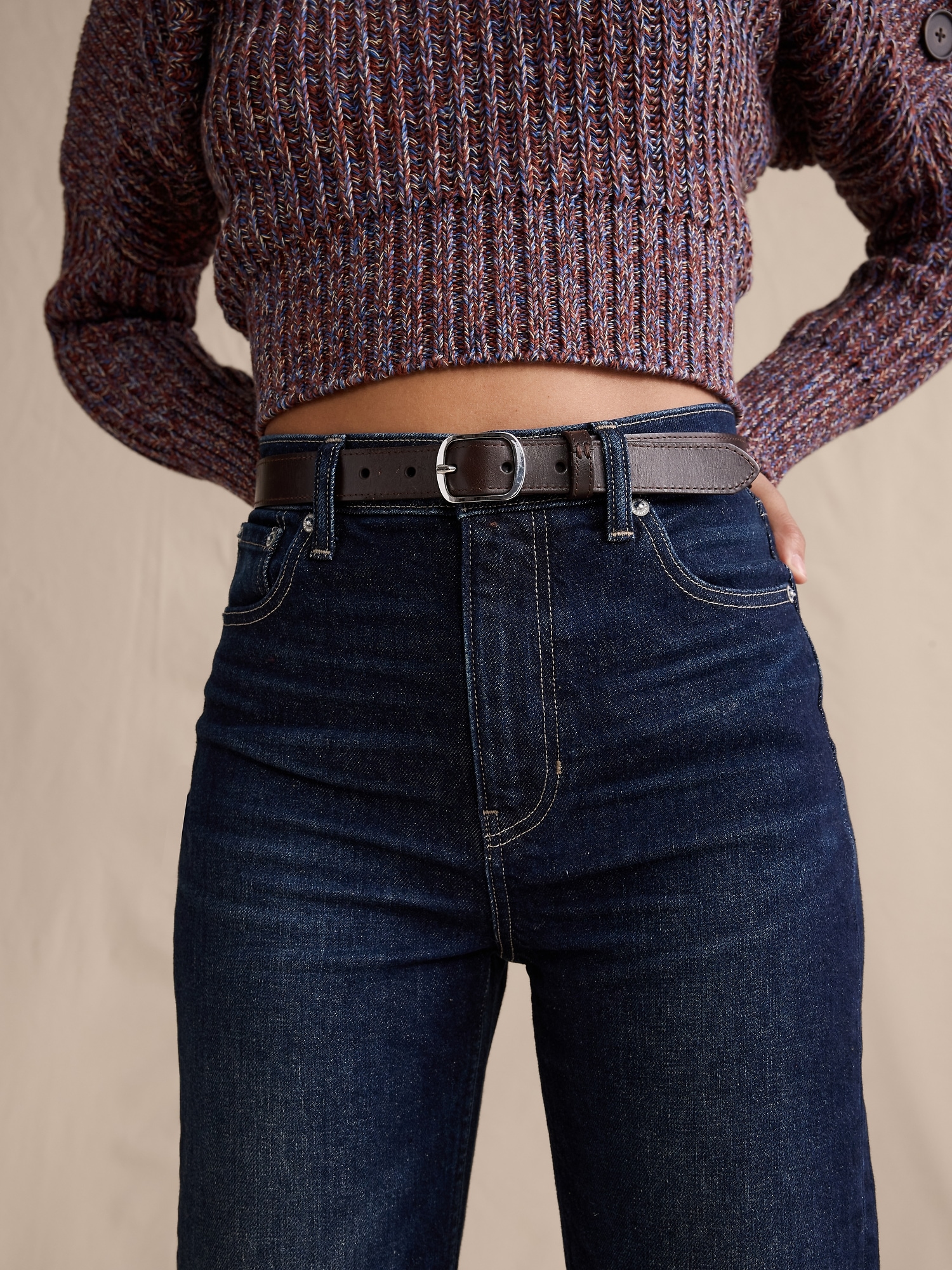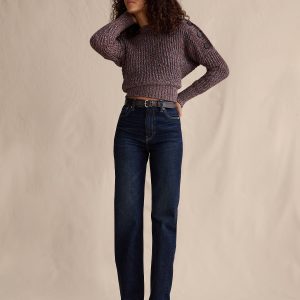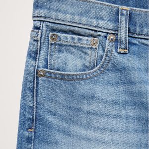 A nod to the 90s. These straight-leg jeans have a high-rise and stovepipe-straight fit through the leg. Our designers selected a soft denim with stretch for comfort.
