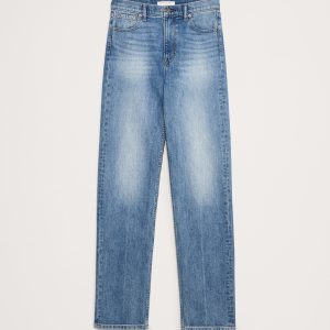 High-Rise 90s Straight Fit: High-rise (12\”). Fitted through waist, hip, and thigh with a straight leg. Full length.
