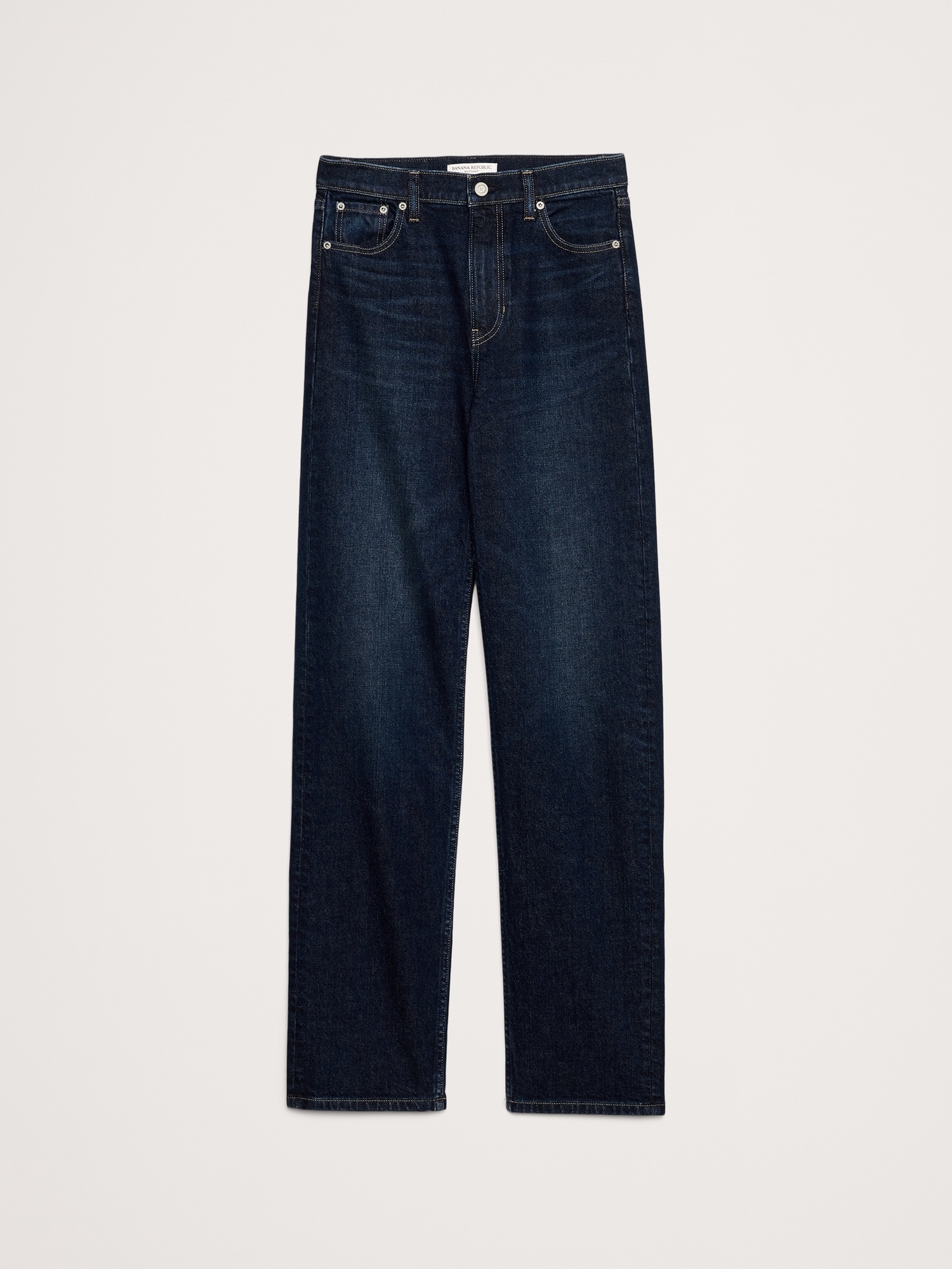 A nod to the 90s. These straight-leg jeans have a high-rise and stovepipe-straight fit through the leg. Our designers selected a soft denim with stretch for comfort.