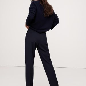 We fell hard for our signature Siena lightweight wool for its all-season weight, subtle stretch, and Italian origins. Here, we cut a slim silhouette with a high-rise and added a trouser crease so it’s giving full-on business formal. Wrinkle-Resistantrise (11.5\”). Fitted waist and hip, semi-fitted through the thigh with a slim leg. Ankle length.