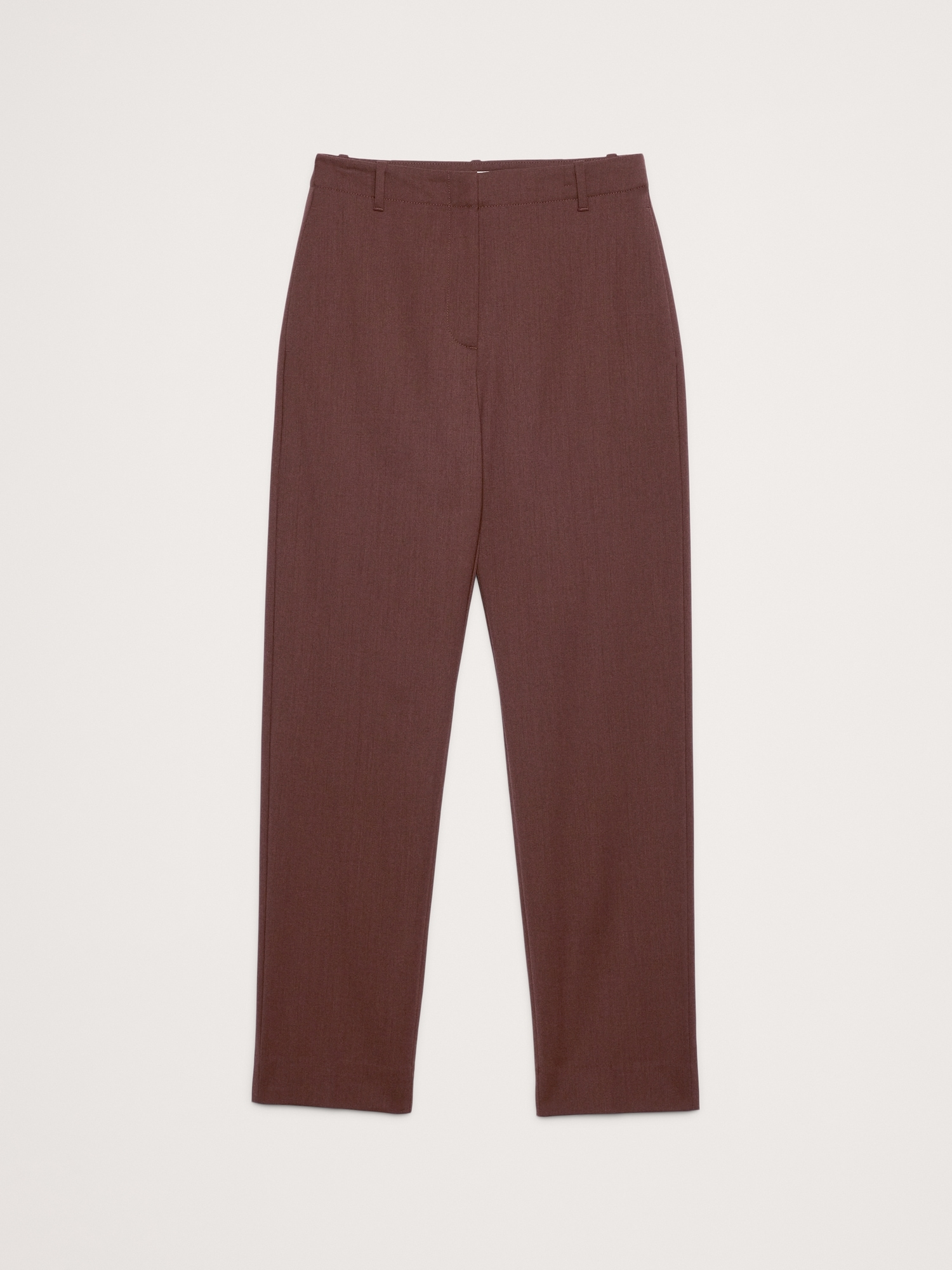 We fell hard for our signature Siena lightweight wool for its all-season weight, subtle stretch, and Italian origins. Here, we cut a slim silhouette with a high-rise and added a trouser crease so it’s giving full-on business formal. Wrinkle-Resistantrise (11.5\”). Fitted waist and hip, semi-fitted through the thigh with a slim leg. Ankle length.