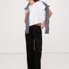 High Rise (12\”). Fitted waist and hip with a straight fit through the thigh and wide leg. Full length.