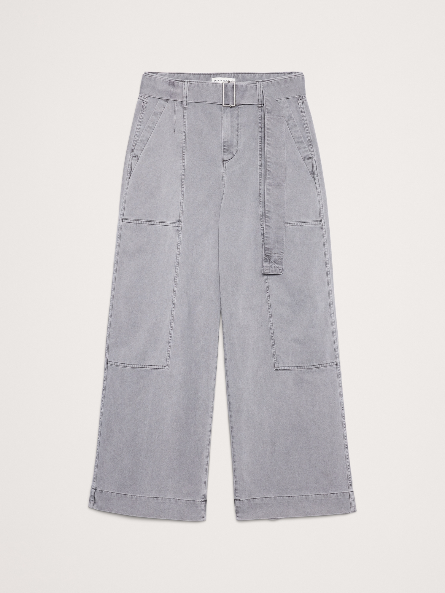 A high-and-wide version the classic chino, we opted for a paneled construction and a slider belt for a utilitarian take. Plus, a garment wash adds already-loved softness.