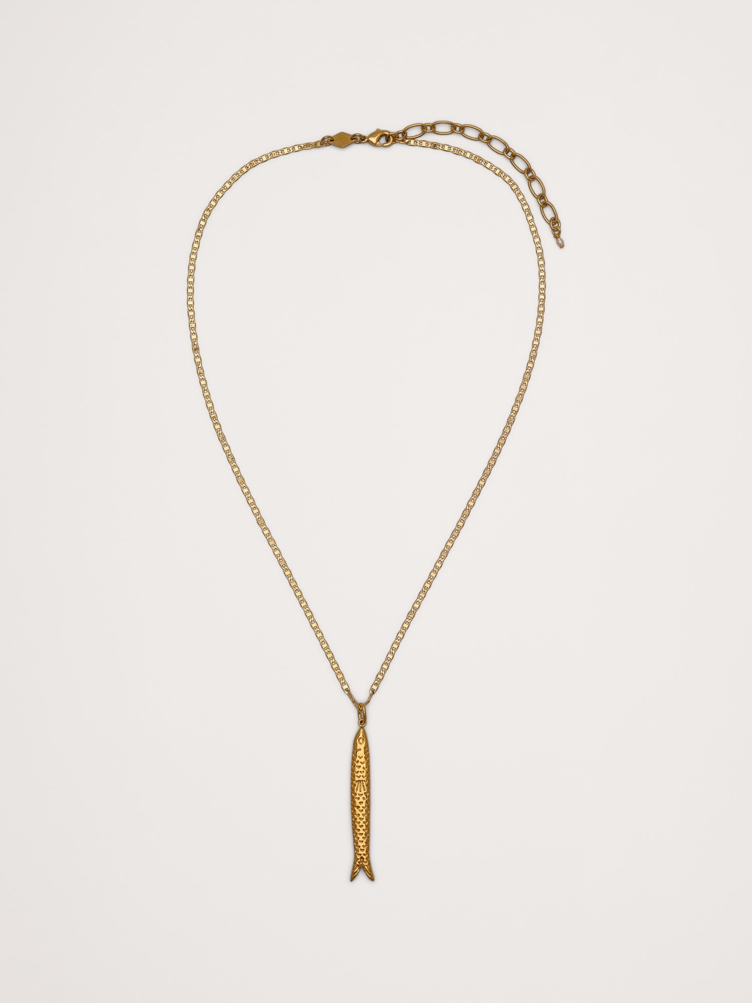 The Hippie Fish Necklace features subtle ocean-inspired textures beautifully captures the spirit of the sea, symbolizing its charm and mystery. A unique piece that embodies our love for the fish symbol, which represents good fortune and harmony.