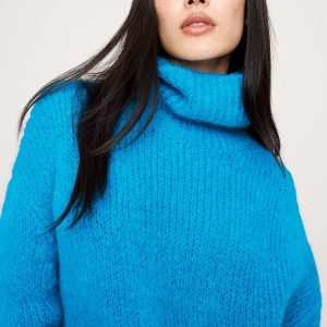 So soft, so warm, this fluffy sweater is made from a luxe alpaca blend—here, in an oversized silhouette with a funnel neck.