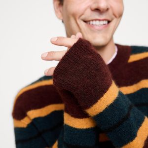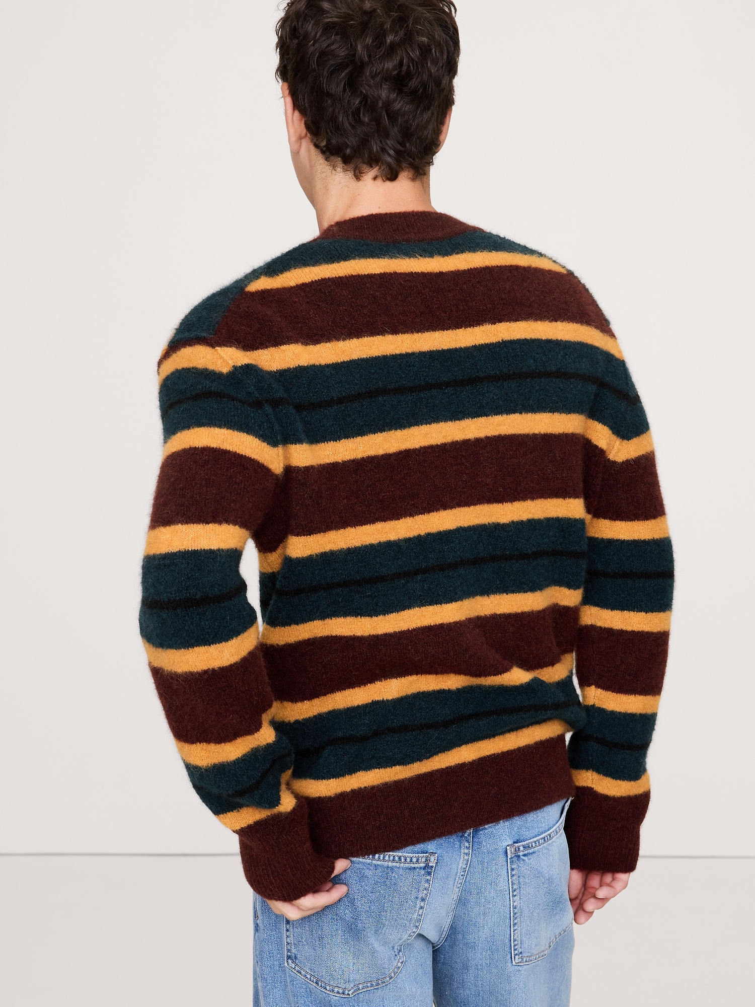 We love the cozy, brushed finish of this extra-warm alpaca and wool blend so we put it to use in a classic crew-neck silhouette with stripes that show off its rich colors.