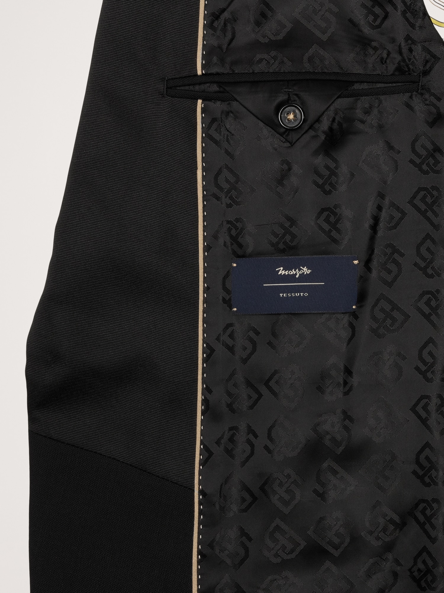 Timeless tailoring, this exquisite black tuxedo jacket offers elevated style to last a lifetime. Made from Italian virgin wool, our designers employed a classic Barathea weave, a sharp roped shoulder construction and our tailored slim fit for a natural look that’s especially polished. Ottoman pockets finish the look with understated sophistication.