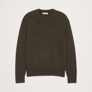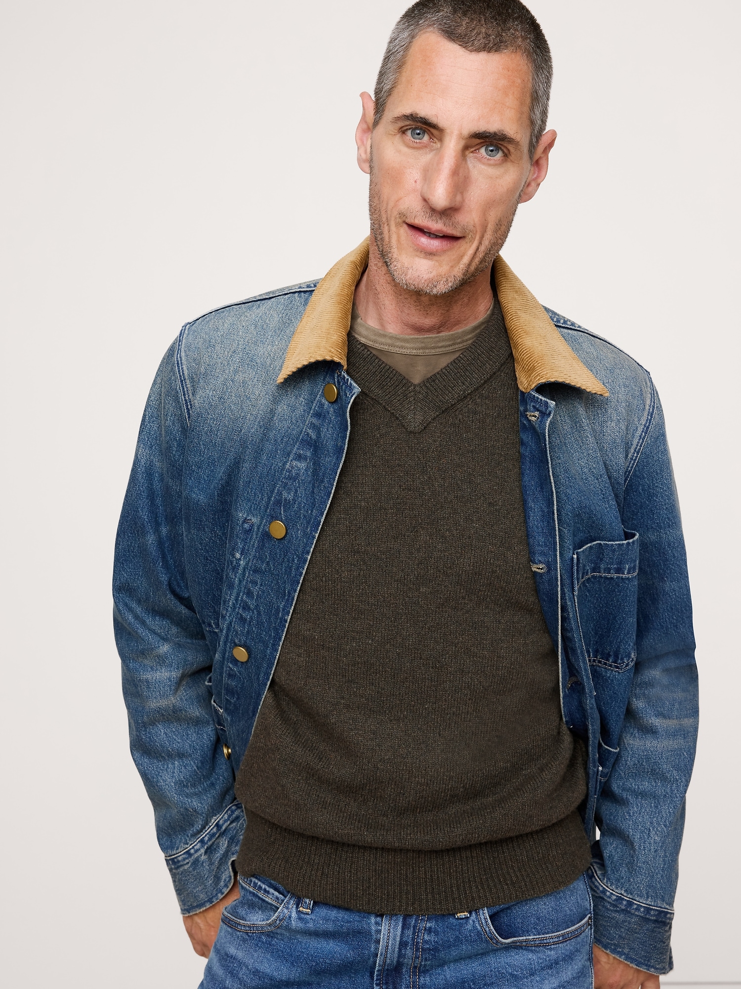 So soft, so warm, this classic v-neck sweater has exposed seams for a rugged look, knitted in our softest Merino wool blend from Italy.