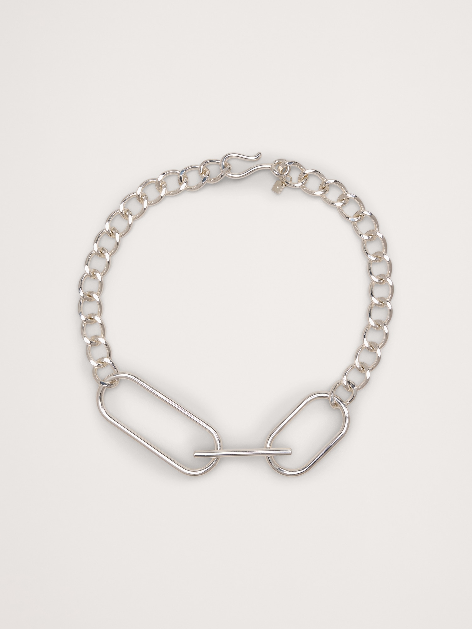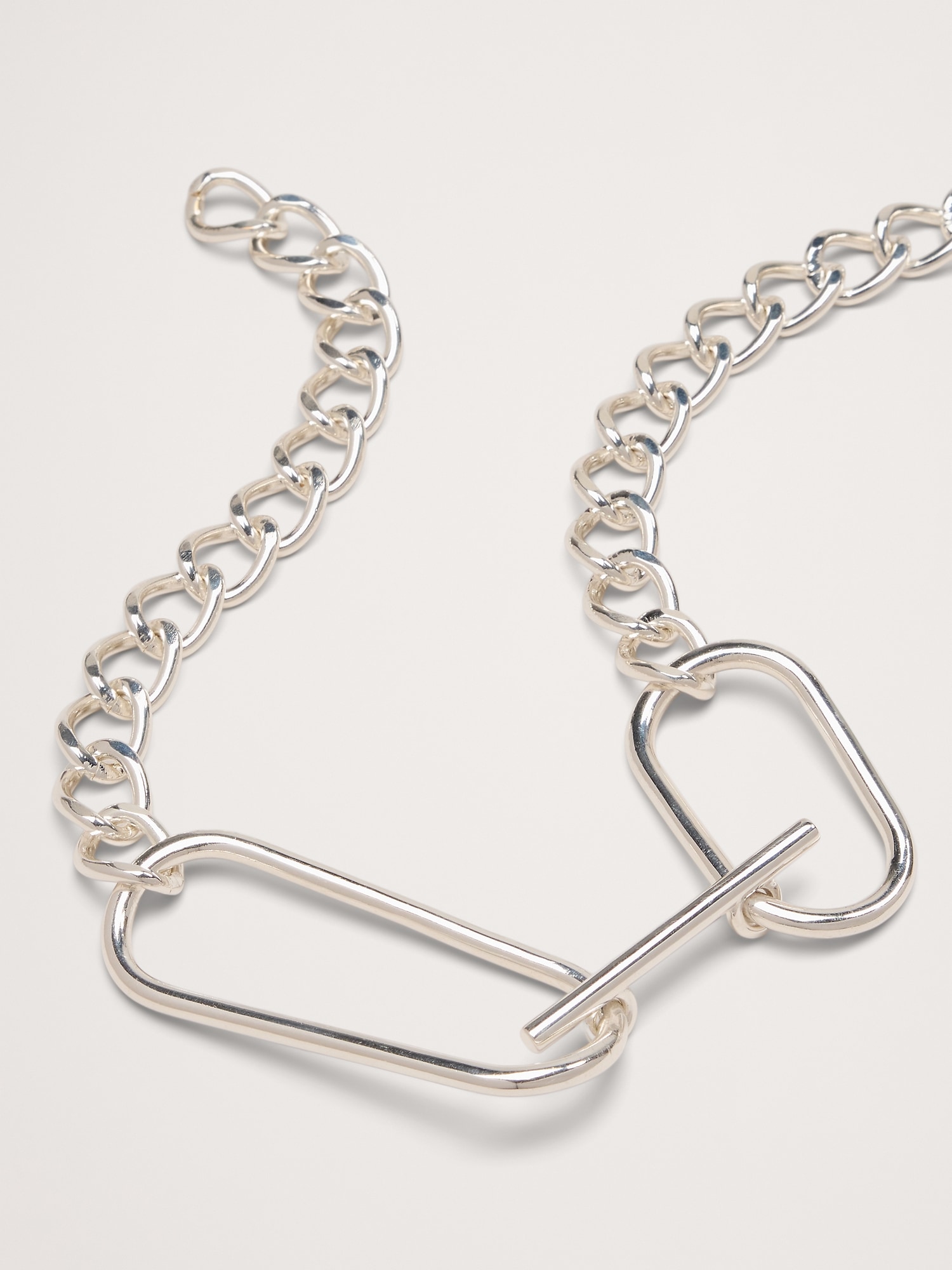 An exploration in duality, the Jackson collection features a mix of round links and curved, paperclip chain links, handcrafted from either 14k-gold or 999-silver plated brass. Part of our demi-fine jewelry collection.