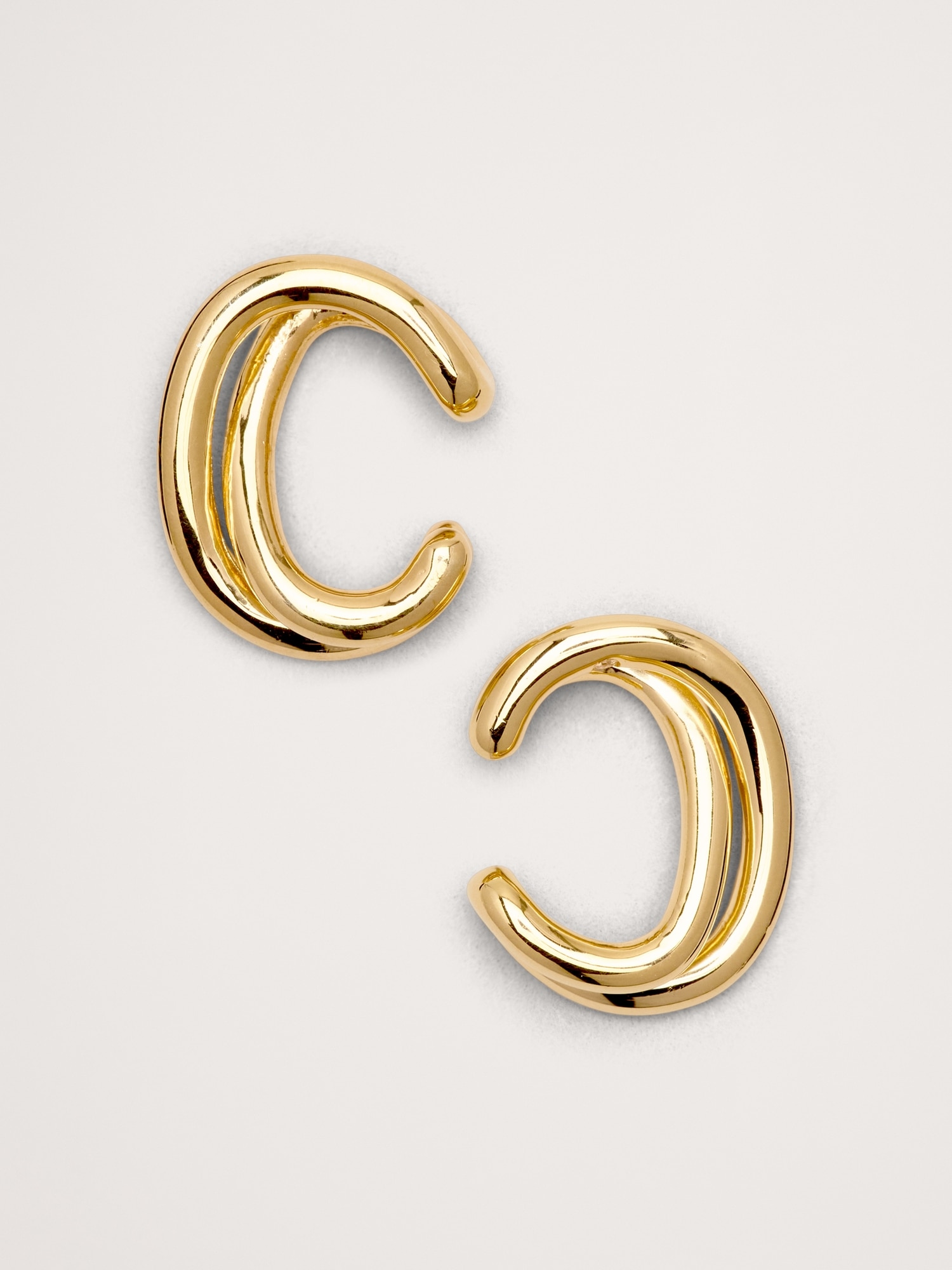 An organic take on an ear cuff designed for pierced and unpierced ears, in 14k-gold or 999-silver plated brass.