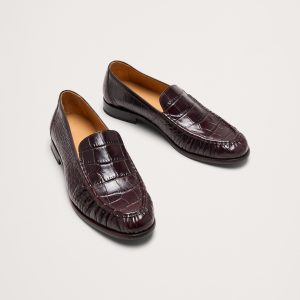 A sleek loafer with moc-toe construction in luxurious leather.