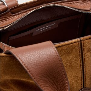 Beautiful materials need no ornamentation. Here, a patchwork tote in a smaller scale that shows off beautiful leathers and suedes from Italy.