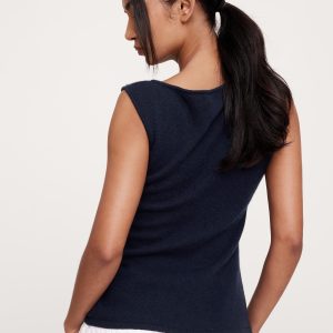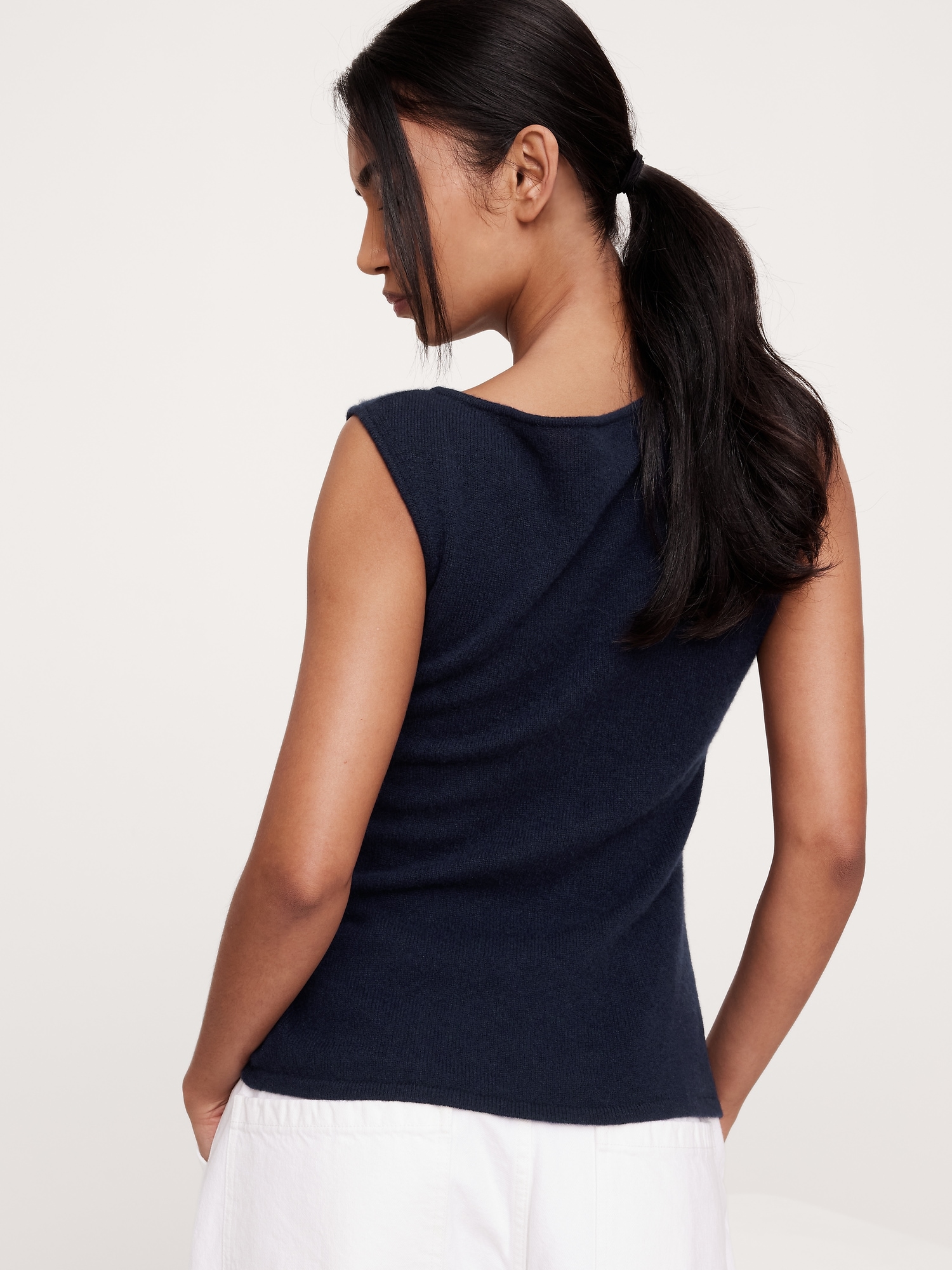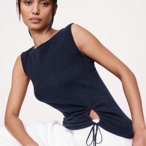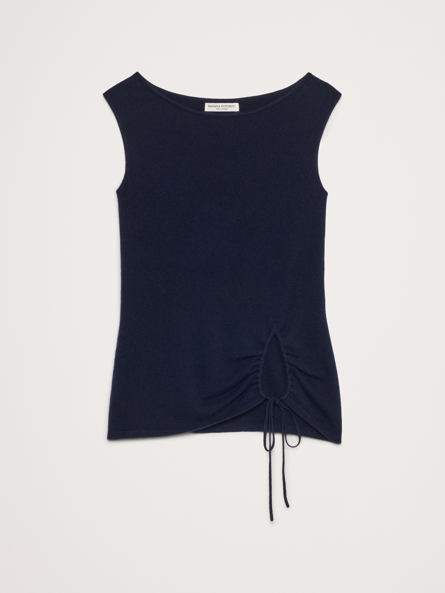 The vibe is lightweight luxury. This boat-neck top has a drawstring detail, knitted from our super-soft, all-season cashmere yarn.