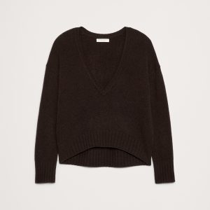 The vibe is lightweight luxury. This updated take on the classic v-neck sweater has not-too-loose fit through the body in our lightweight cashmere yarn—selected for its luxurious softness and all-season weight.