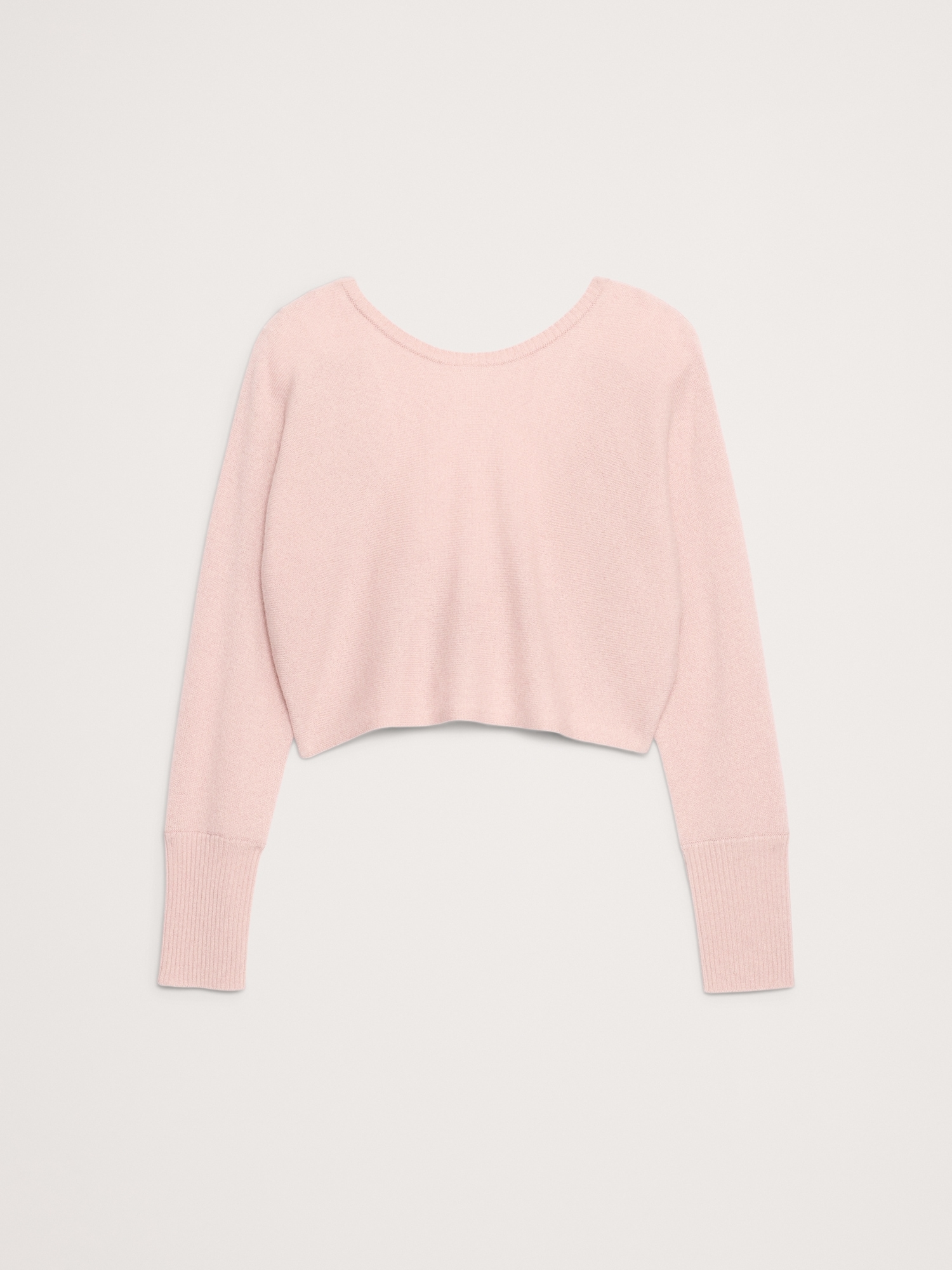 The vibe is lightweight luxury. This backless cashmere sweater has an oversized fit, knitted in our lightweight cashmere yarn—selected for its softness and all-season weight.