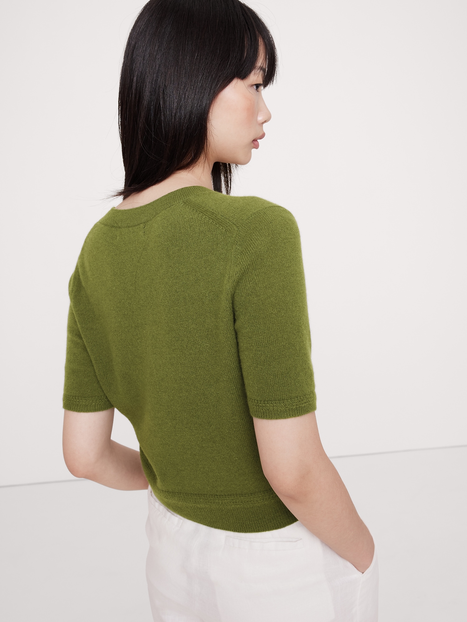 Lightweight Cashmere V-Neck Short-Sleeve Sweater