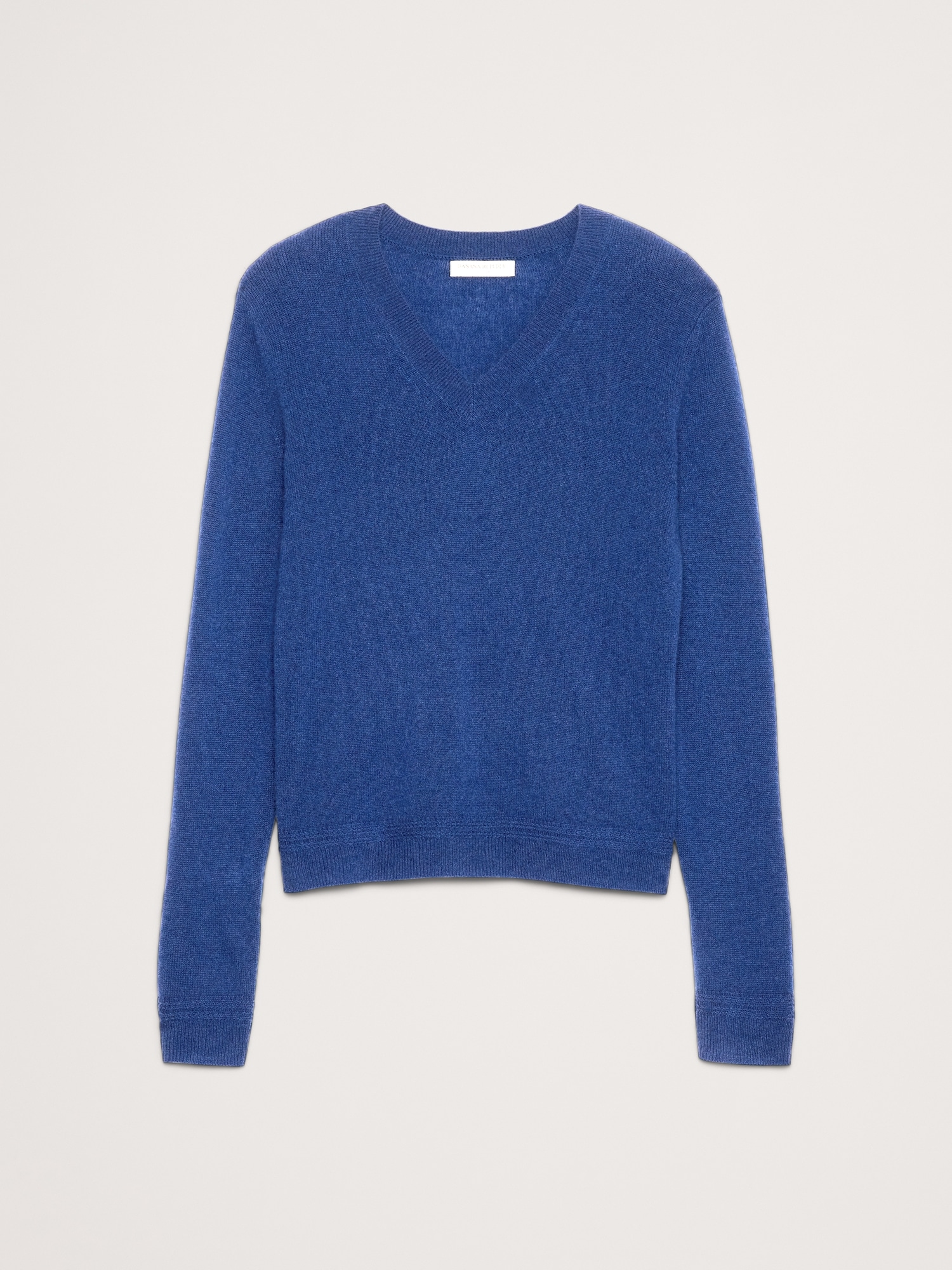 The vibe is lightweight luxury. This updated take on the classic V-neck sweater has not-too-loose fit through the body. We knitted it from our lightweight cashmere yarn, selected for its luxurious softness and all-season weight.