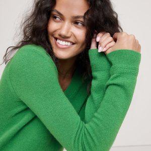 The vibe is lightweight luxury. This updated take on the classic V-neck sweater has not-too-loose fit through the body. We knitted it from our lightweight cashmere yarn, selected for its luxurious softness and all-season weight.