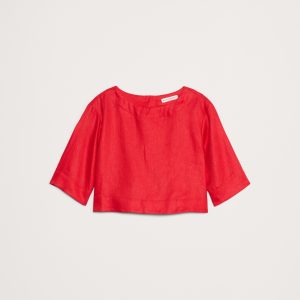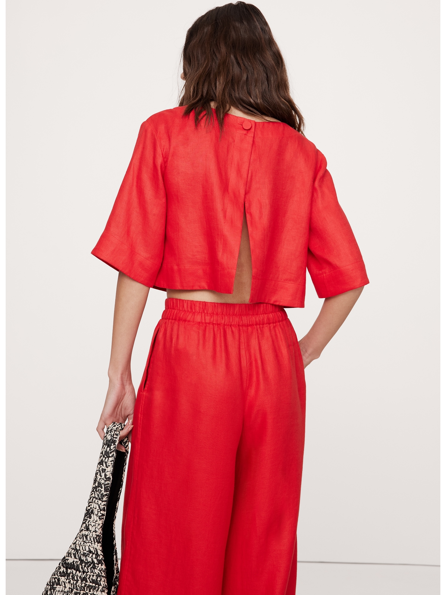Linen Boat-Neck Cropped Top