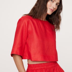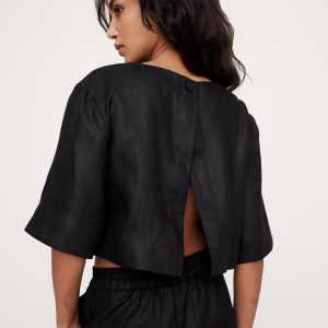 We love an easy top, in 100% certified-European linen. The almost-open back and cropped length of this one means it pairs easily with linen skirts, linen shorts, linen pants…all linen, all day.