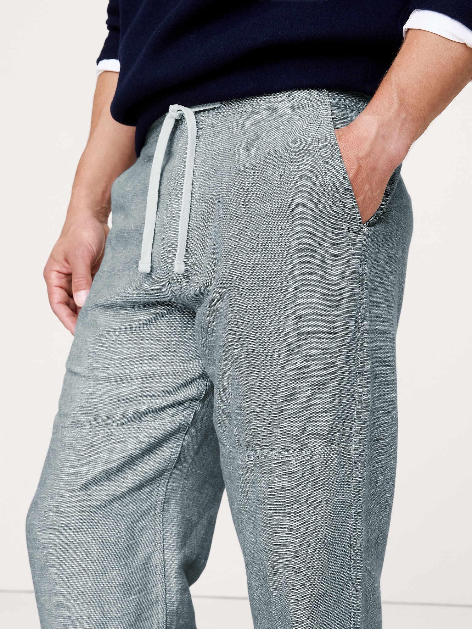 A super-cool pant. We found a pair of utility pants in the archives and knew we had to reimagine them in this special linen and cotton—an ideal choice in hot, humid weather.