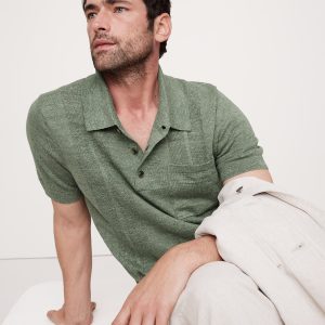 Linen-Cotton Ribbed Sweater Polo