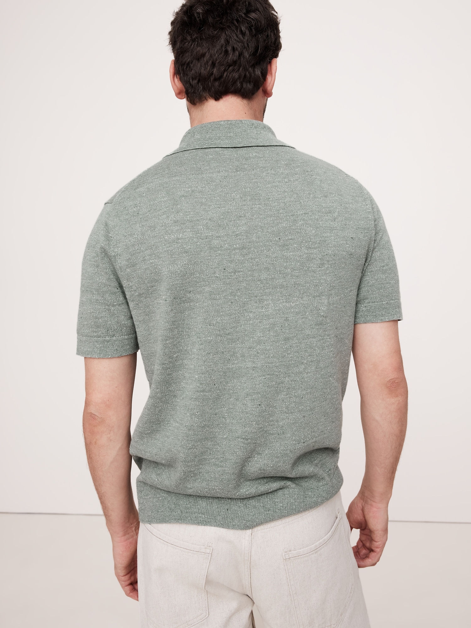 We’re reintroducing our tried-and-true linen-cotton sweaters because we love them so much. Here, a classic sweater polo with striped accents to capture the look and feel of true vintage.