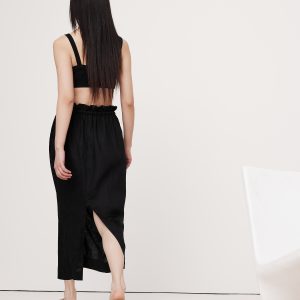 The vibe is off-duty. This column-style skirt has drawstring waist and a straight fit through the body, cut from 100% certified-European linen—an ideal choice in hot, humid weather.