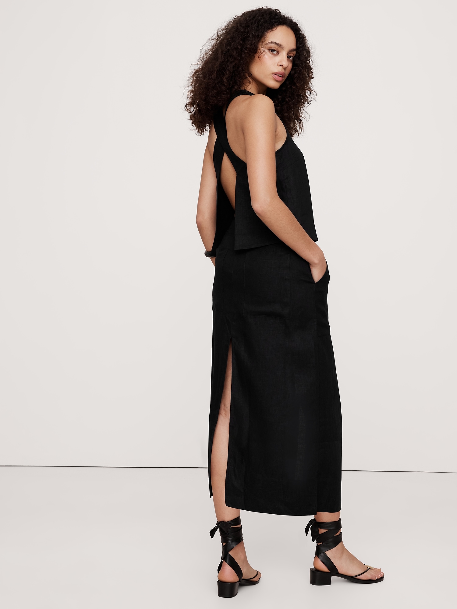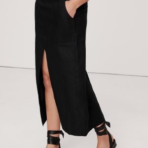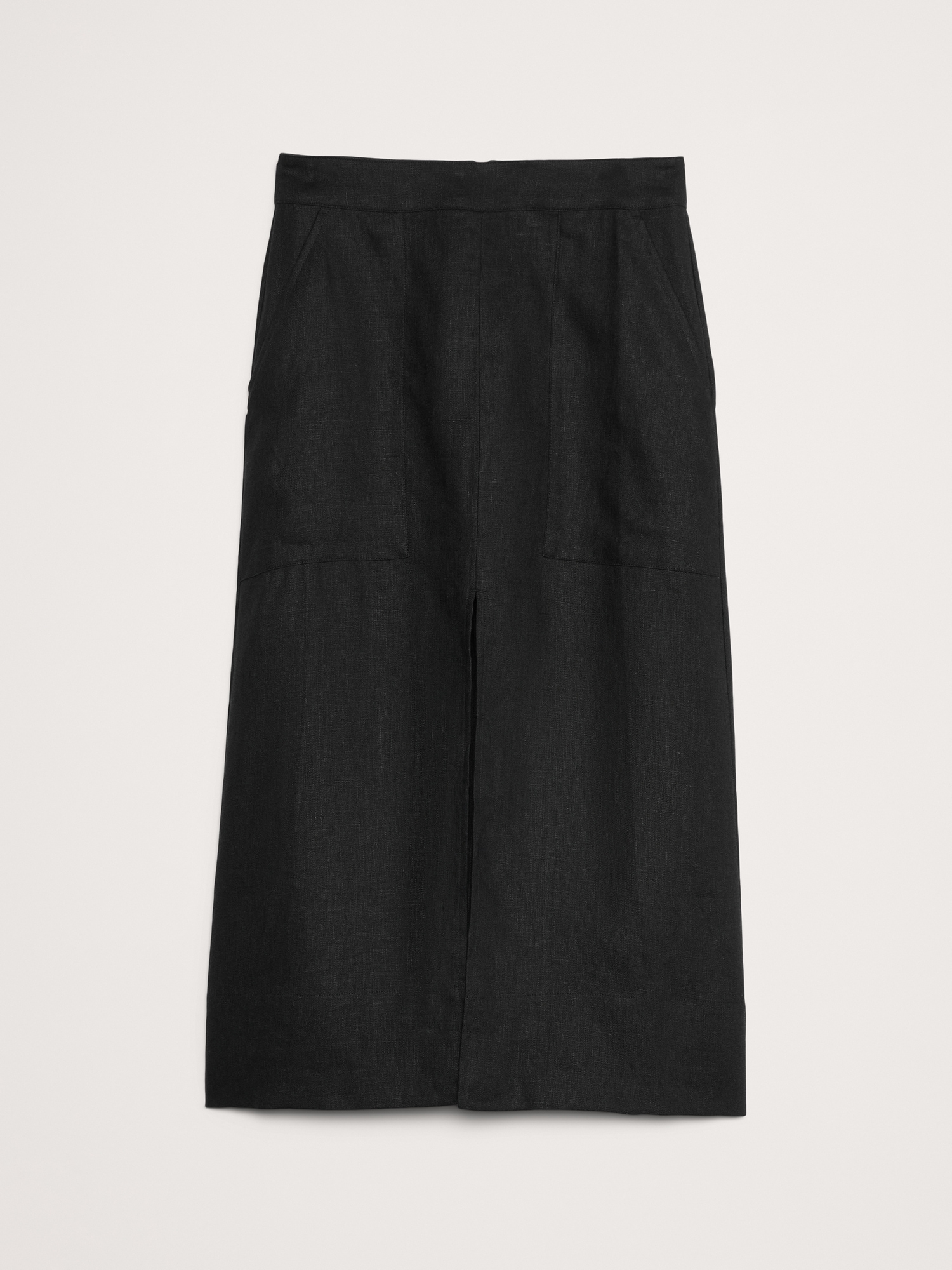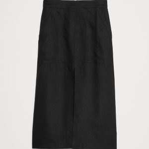 Relax, it’s linen. This midi skirt is cut with patch pockets and slits at front and back for an at-ease look.