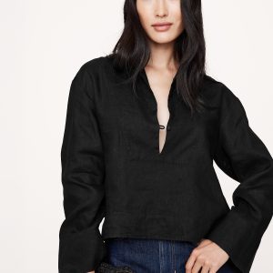 An easy popover top, in 100% certified-European linen. We added wide sleeves and a split neck with a single button. Relaxed fit: Relaxed fit through shoulders, chest and waist. Split neck with button closure. Straight hem. Unlined. #770055