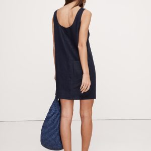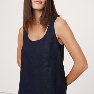 A classic, sleeveless shift dress. We added a chest pocket and cut it in our premium, certified European flax linen—an ideal choice for hot, humid weather.