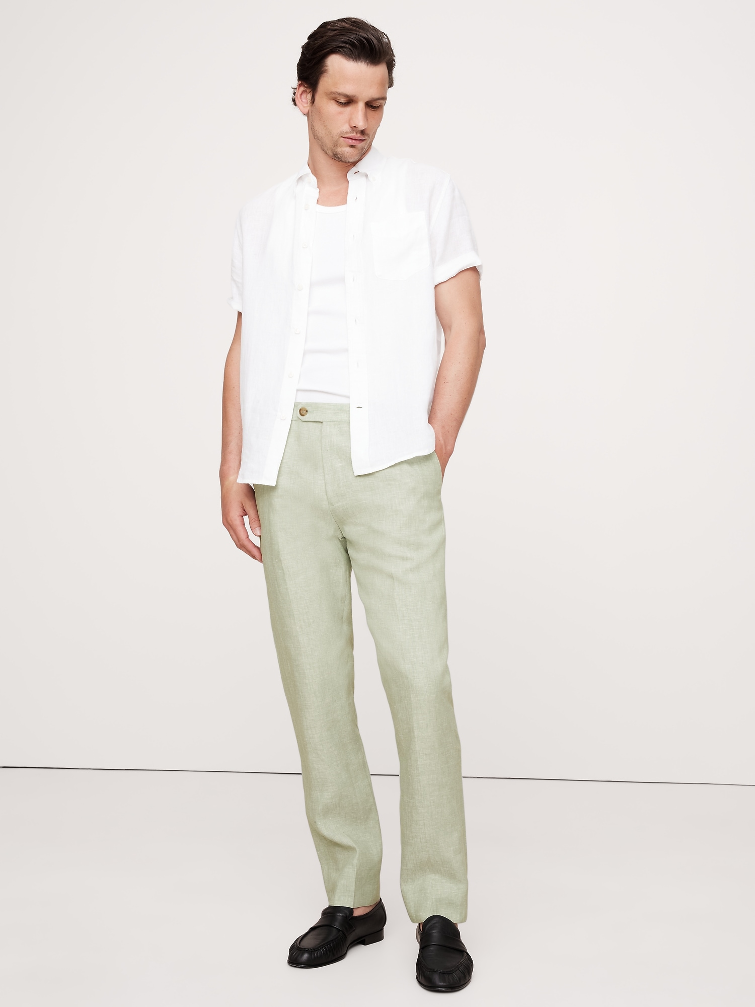 Designed with warm climates in mind, this sleek suit pant is cut from premium linen—seen here in a soft délavé blue. Wear it with the matching suit jacket—hello, summer wedding season—or dress it down with a retro sweater polo.