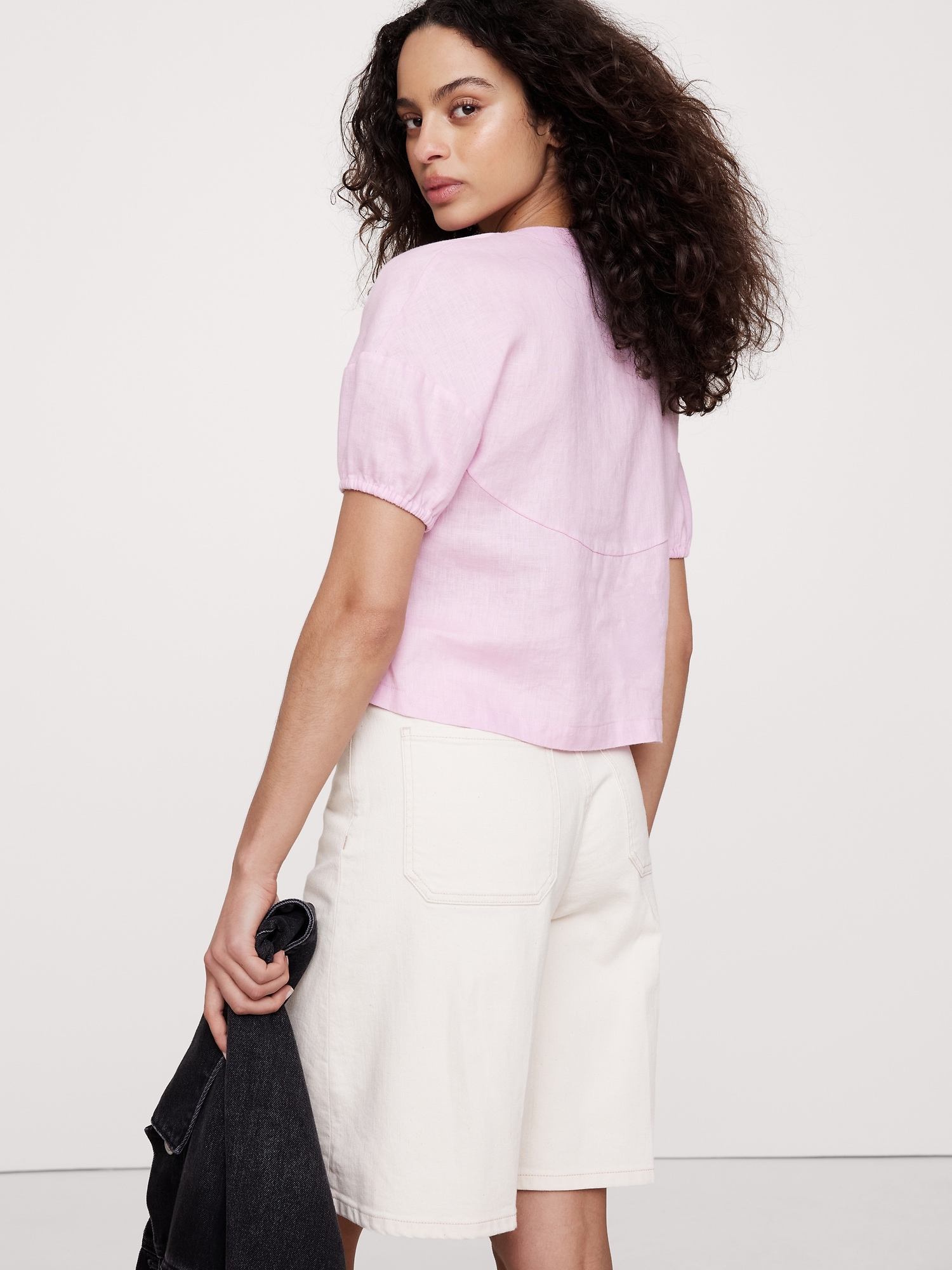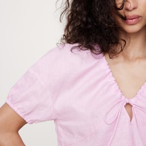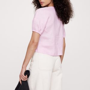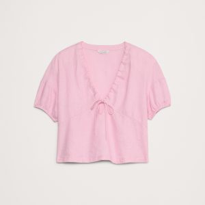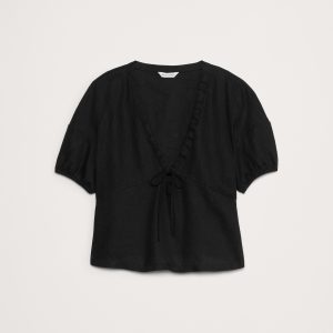 Linen Tie-Front V-Neck Top
