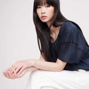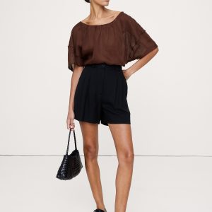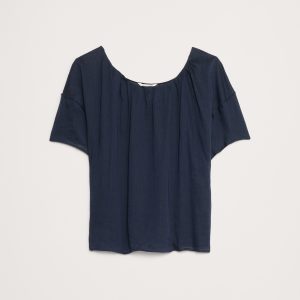 Linen-Viscose Puff-Sleeve Top