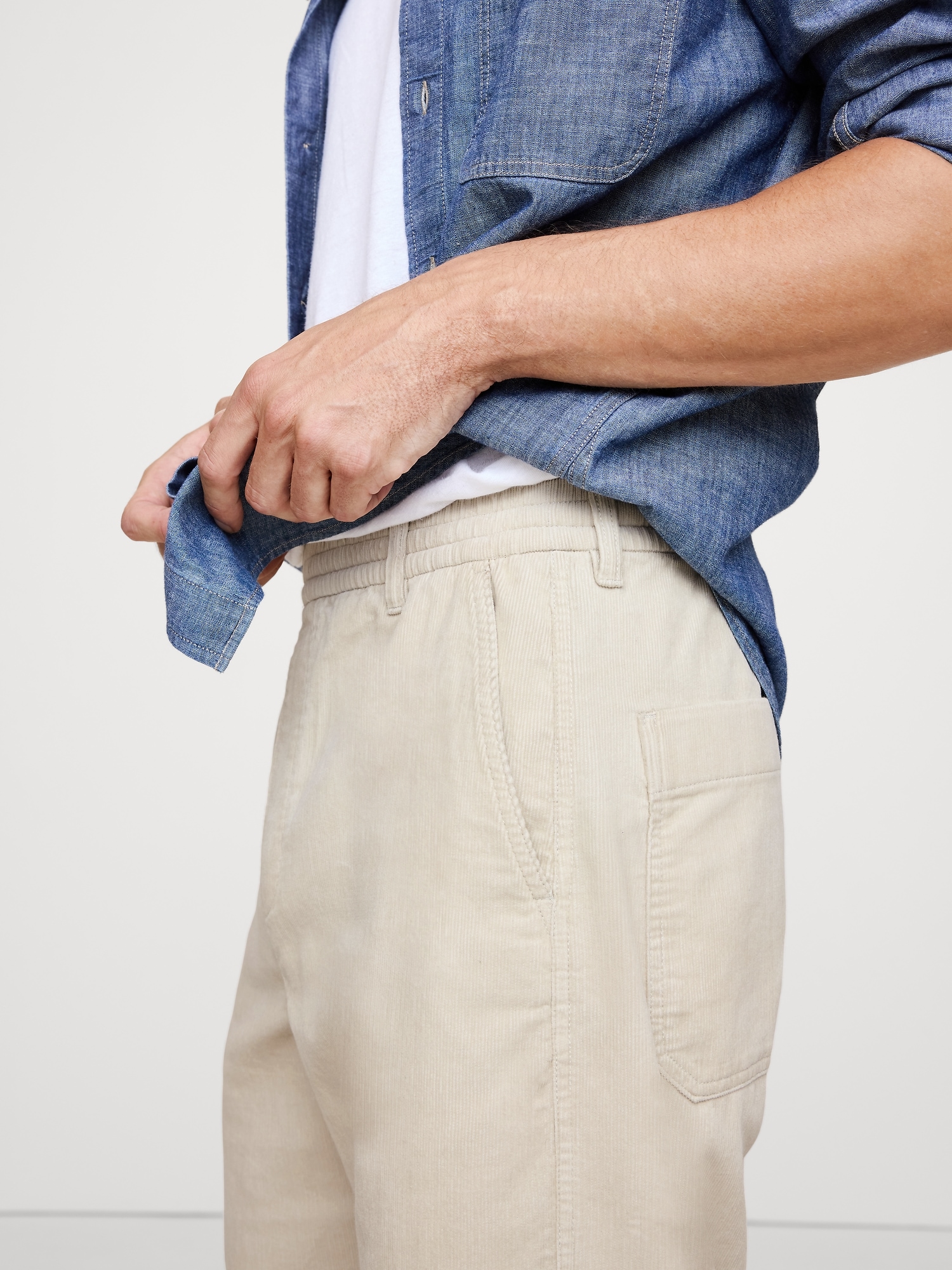 A super-cool pant. We kept the fit baggy, reaching for a lighter 100% cotton corduroy so they’ll carry you through fall and beyond.